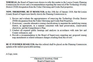 Following local government in Louisa, Virginia