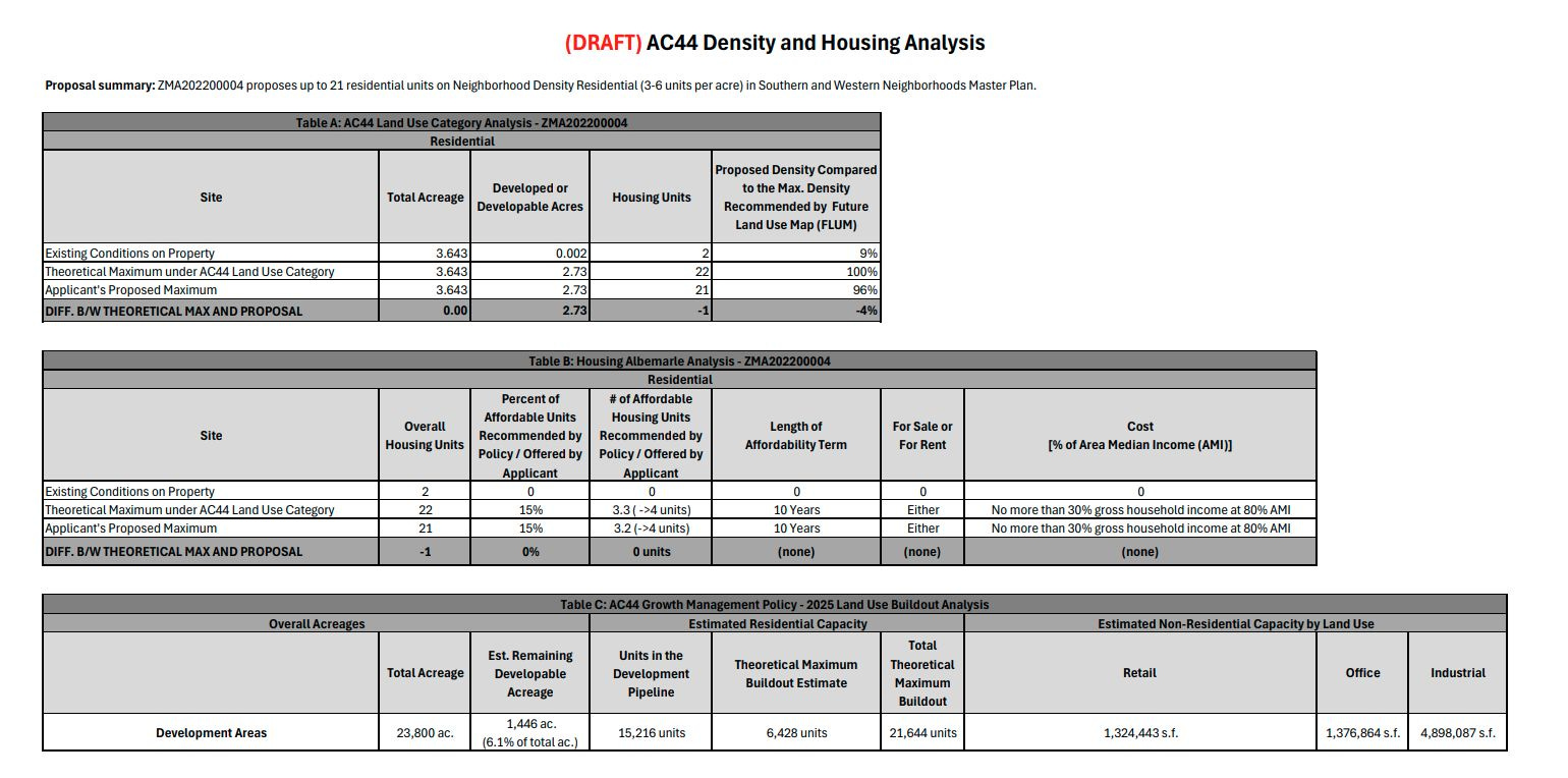 “In ‘22, our total theoretical maximum build out was just over 24,000 units,” said J.T. Newberry, a senior planner in Albemarle County’s Department of Community Development. “In ‘25, we see that that had decreased to 21,644 overall units.”