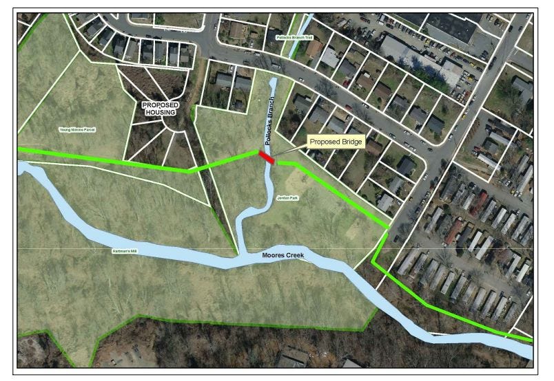 The city is seeking a firm to build a timber bike and pedestrian bridge over Pollocks Branch at Jordan Park. Bids close on February 26, 2024. (learn more)