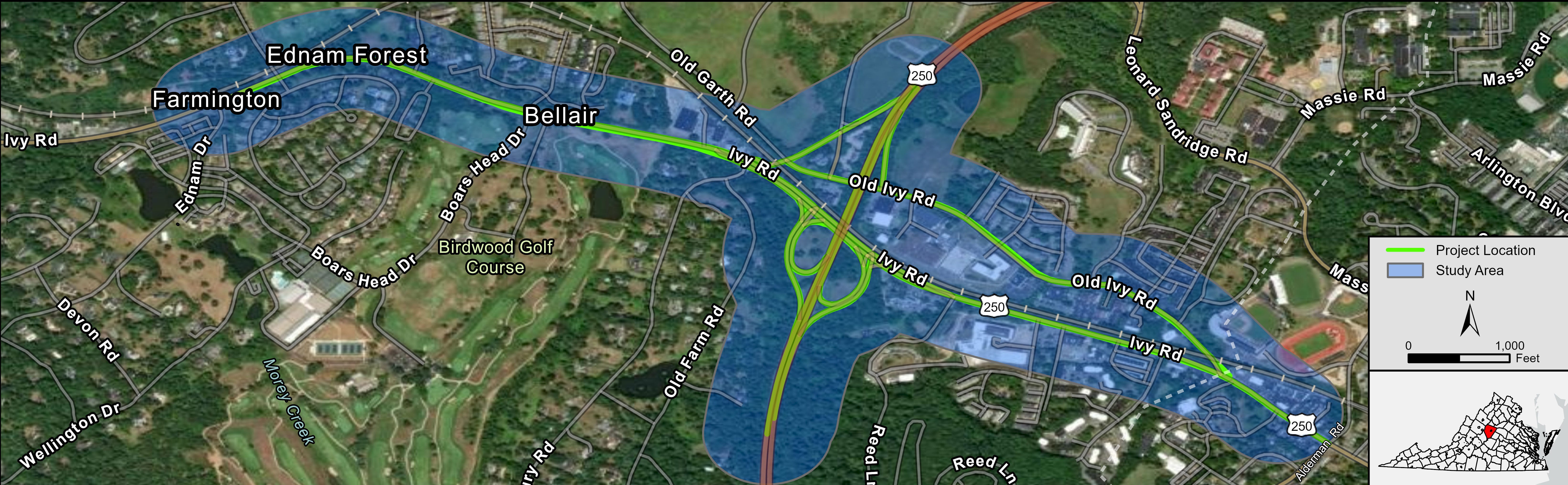 There are two areas in the jurisdiction of the Charlottesville-Albemarle Metropolitan Planning Organization that are currently under review through the program. One covers Barracks Road between Emmet Street and the U.S. 250 bypass. (view the website)