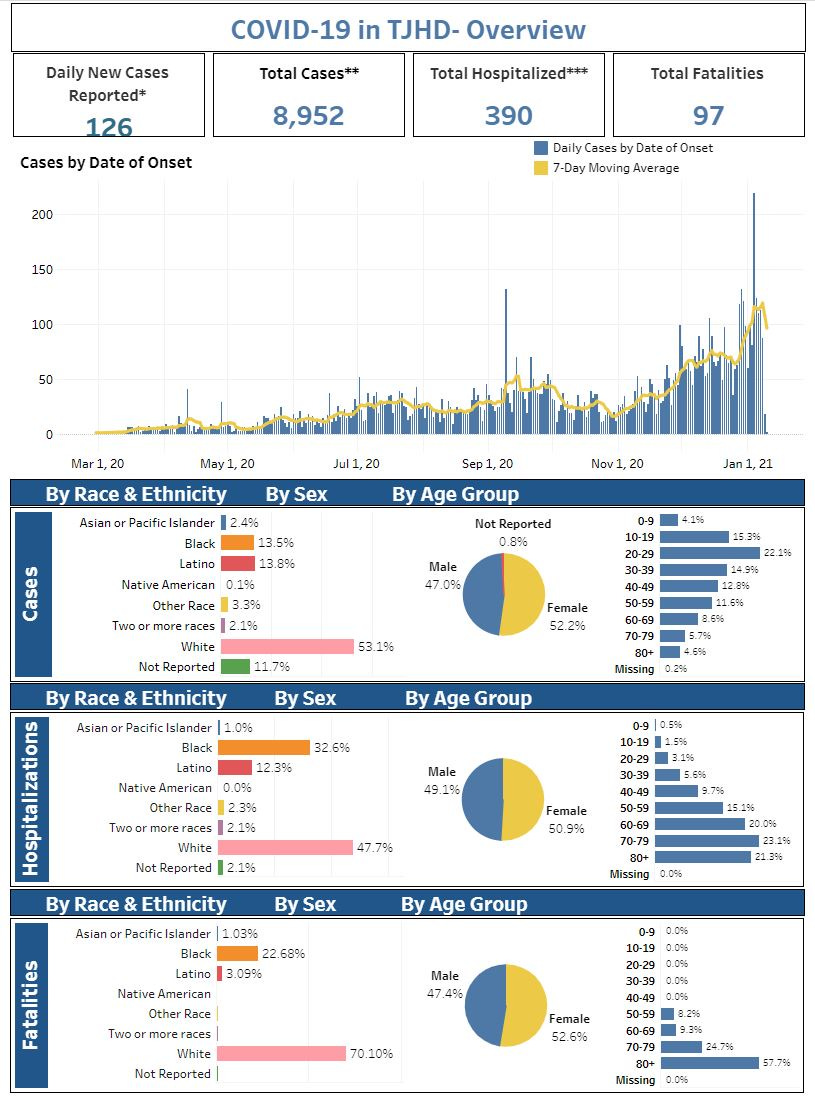 In the Blue Ridge Health District, the seven-day average for new daily cases is 149, with 126 reported today. There has not been a new fatality reported in a week and the total count remains at 97.
