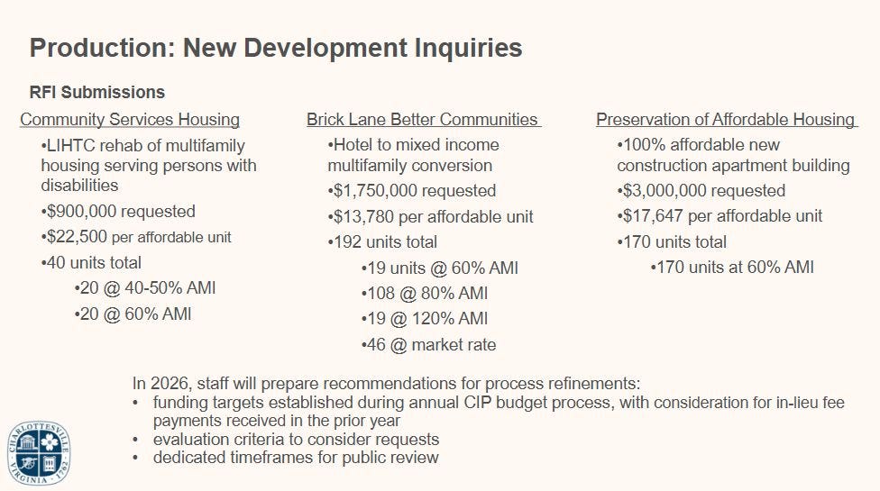 Charlottesville City Council provides direction on a new set of requests for investments in affordable housing projects