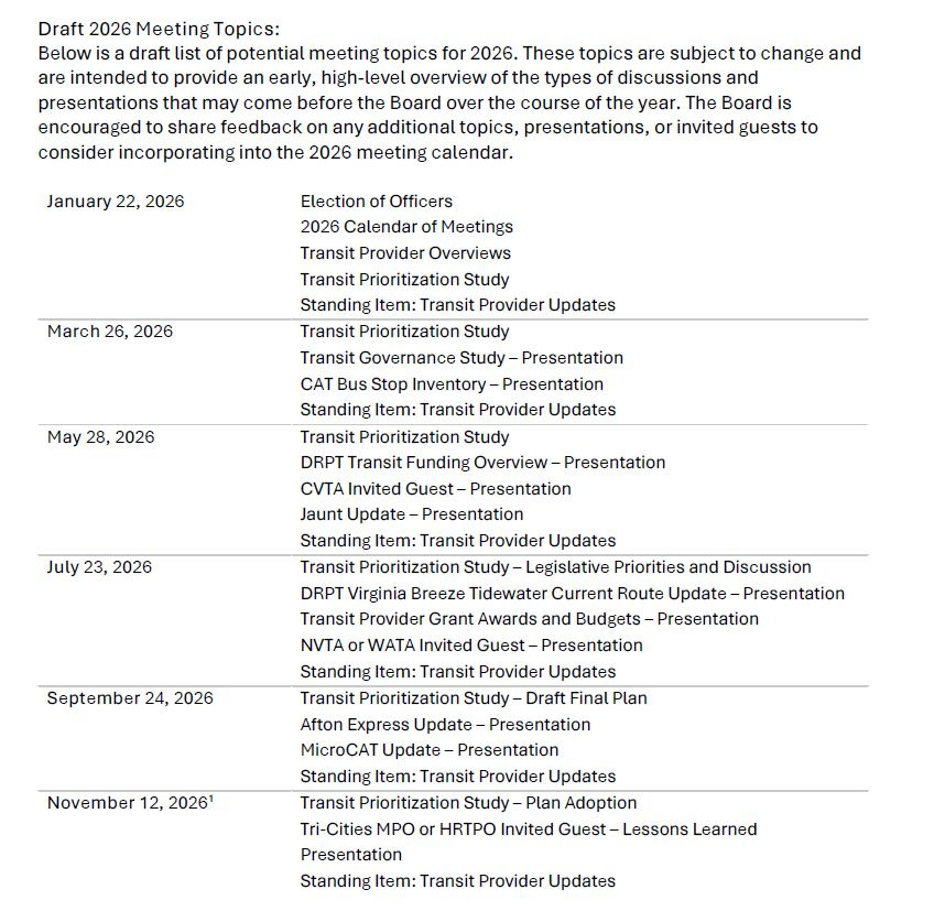 The Charlottesville Albemarle Regional Transit Authority will meet today the first time in 2026