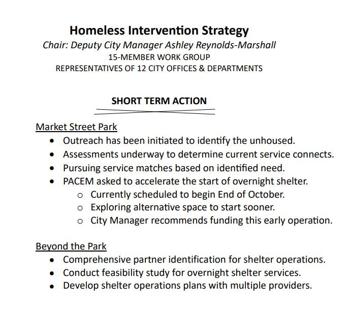 “This collaborative effort helps relieve encampment congestion in Market Street Park and addresses these neighbors’ need for a safe place to sleep at night,” reads that press release.
