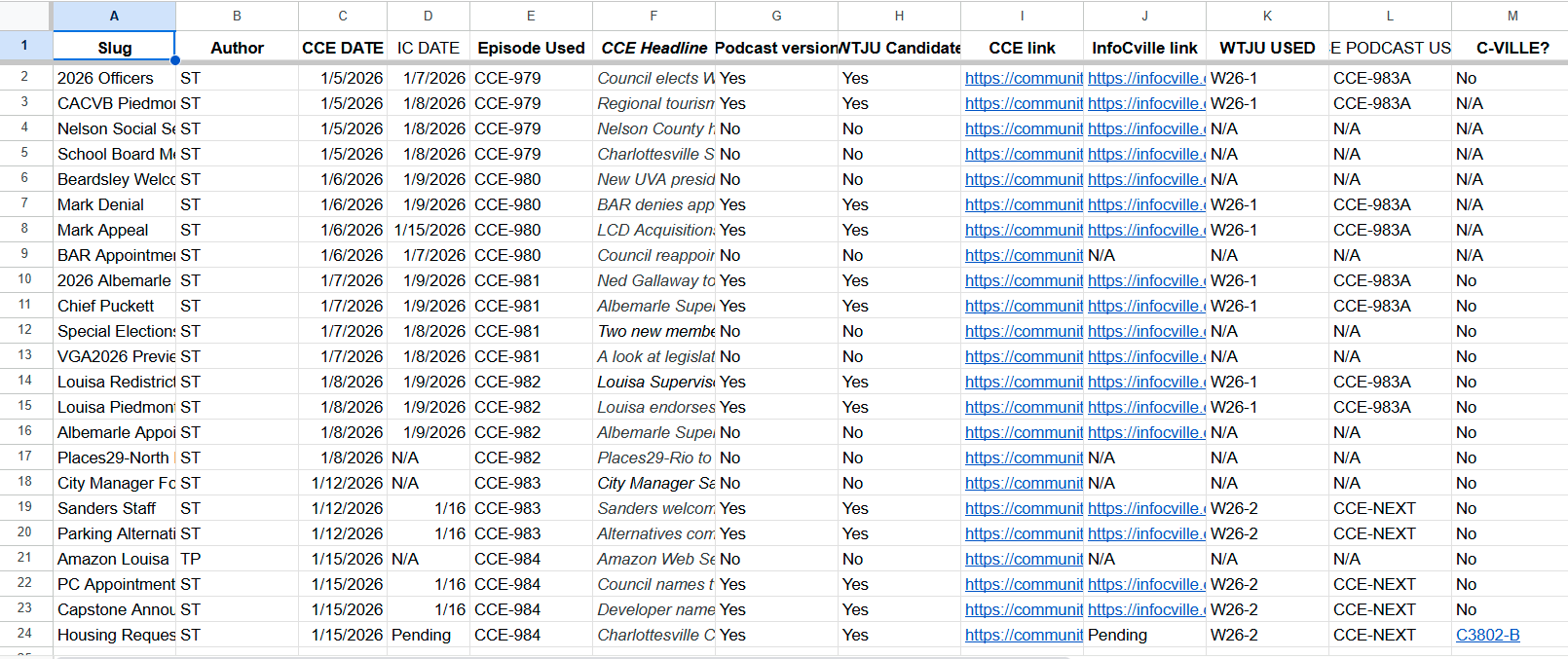 The month of January 2026 is halfway through and the pace of the previous year appears to have continued with no days off in a period of transition and tumult. I’m Sean Tubbs, and Charlottesville Community Engagement is a newsletter with stories about a part of the world I’ve been covering for a long time with a focus on growth, development, housing, and whatever else comes together.