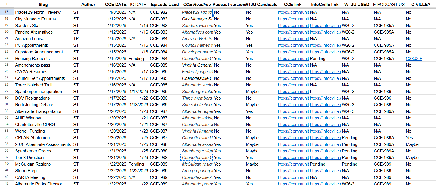 If there’s anything I have learned in my thirty years of reporting, it is that there is always more to be learned. One reason to do journalism is to document potential solutions to problems over time. At least, there’s the point of Charlottesville Community Engagement and this edition is a collection of audio stories from the past week. For those of you who do not want to listen, there are also links to this newsletter’s archive at Information Charlottesville.