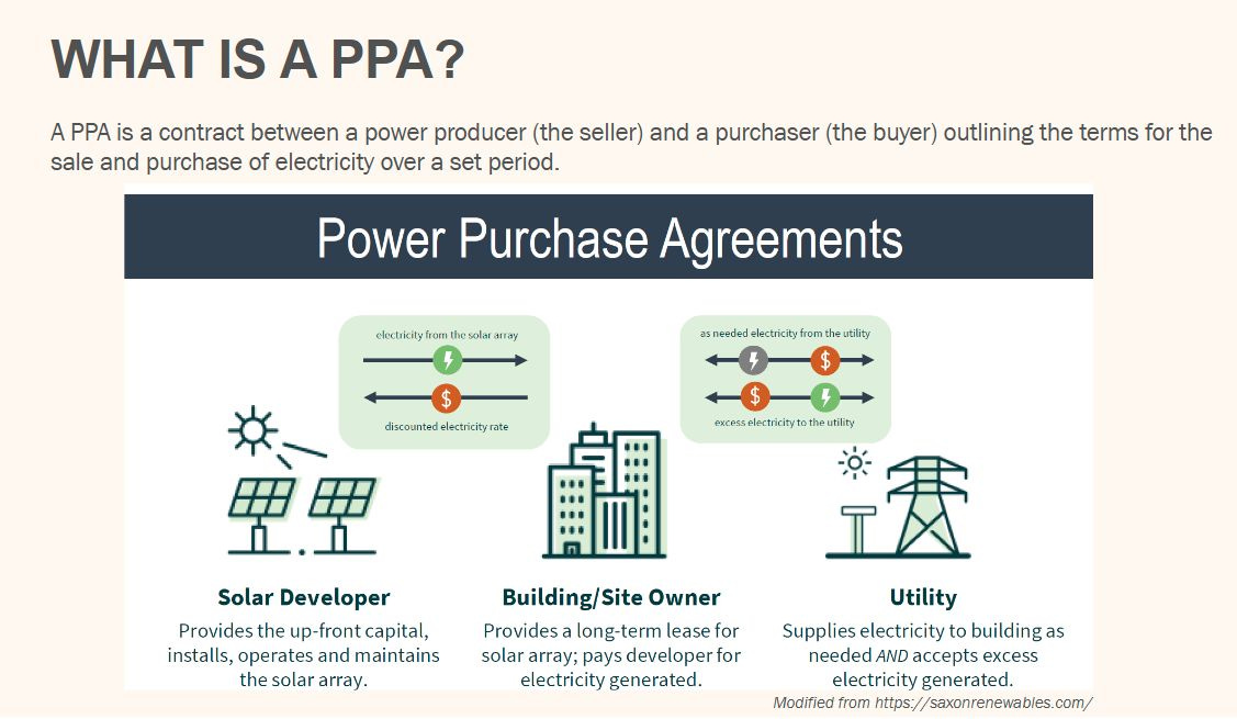 “The PPA model involves a long-term contract and site access arrangement on the property of a host customer,” the report continues. “The developer retains ownership and operational responsibility of the solar array and the host customer purchases the system’s electric output at a negotiated rate (proposed to be lower than the prevailing utility rate) and for a predetermined period (usually up to 25 years).”