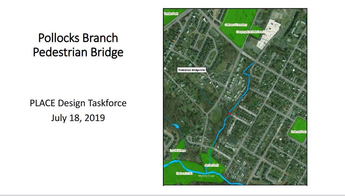Planning for this bridge dates back to 2016 when a previous City Council approved a “walkable watershed” concept for the area and $250,000 was committed to the bridge in 2017.