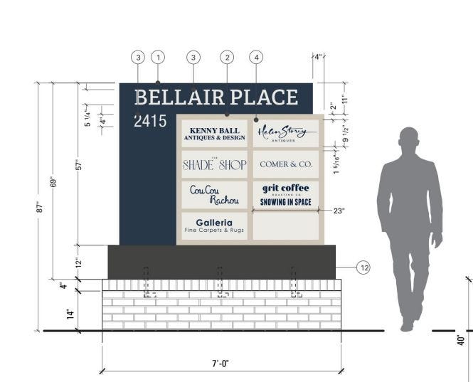 The first item is the review of a sign at 2415 Ivy Road, a commercial center known as Bellair Place.