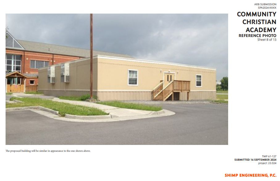 The second item is for a major amendment to the certificate of appropriateness for 114 Old Brook Road to allow for a modular building to be constructed to accommodate students at the Community Christian Academy. Supervisors approved a special use permit for this use on September 4, 2024.