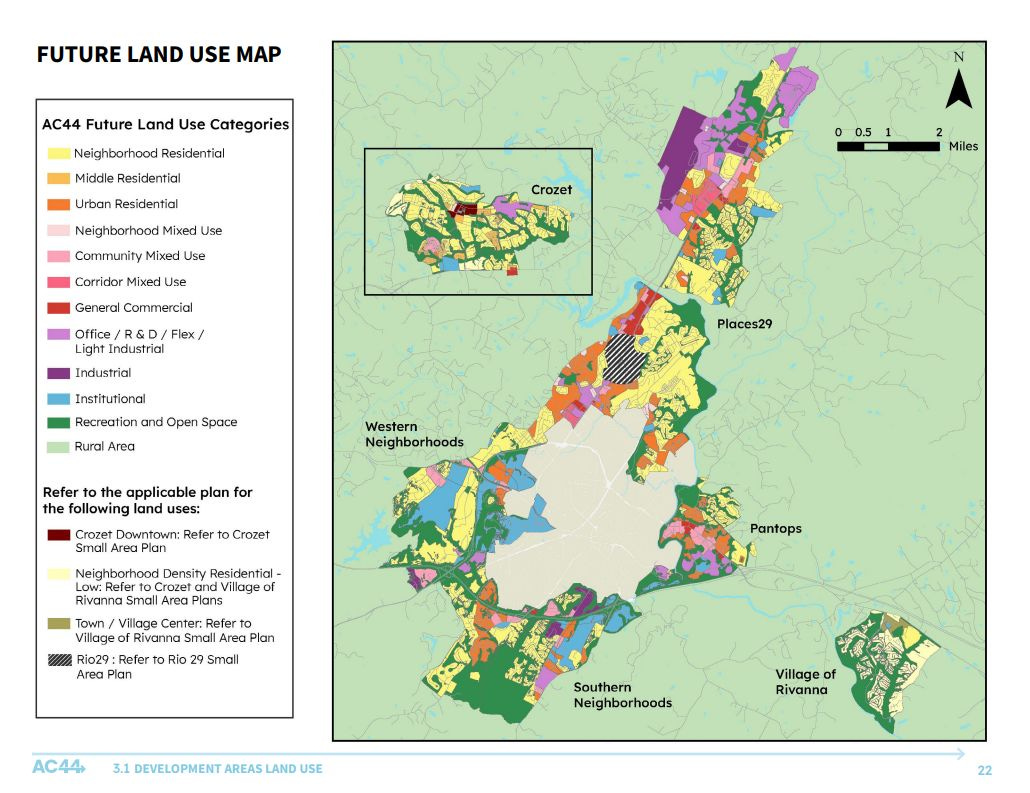 Next up, there will be a work session on the draft development area land use chapter in AC44. After a months-long pause, review has resumed of an update of a Comprehensive Plan last approved by the Board of Supervisors in 2015.